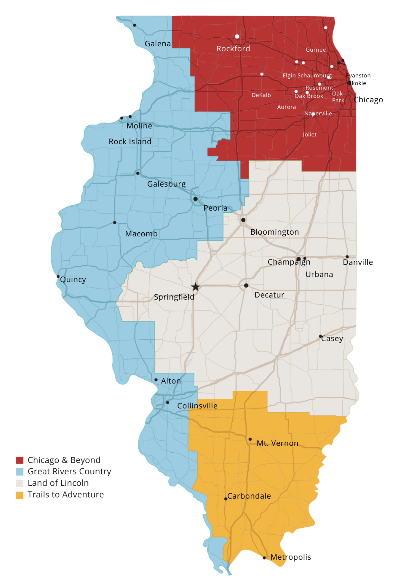 Choose a region to start your journey and discover sites across Illinois that reflect the people, places, and stories that shaped our state and our nation